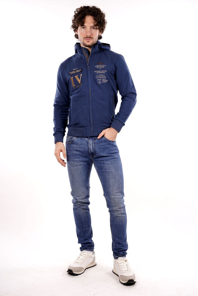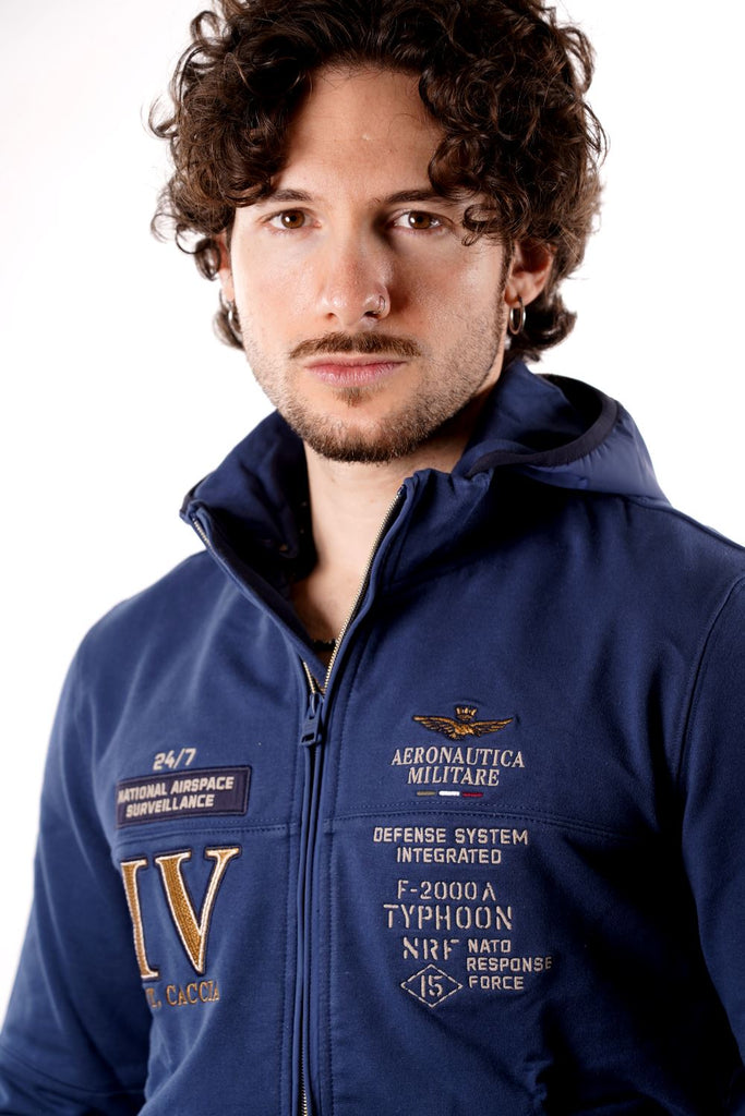 Felpa full zip cappuccio AERONAUTICA MILITARE da Uomo - blu FE206321315 BLUAVIO