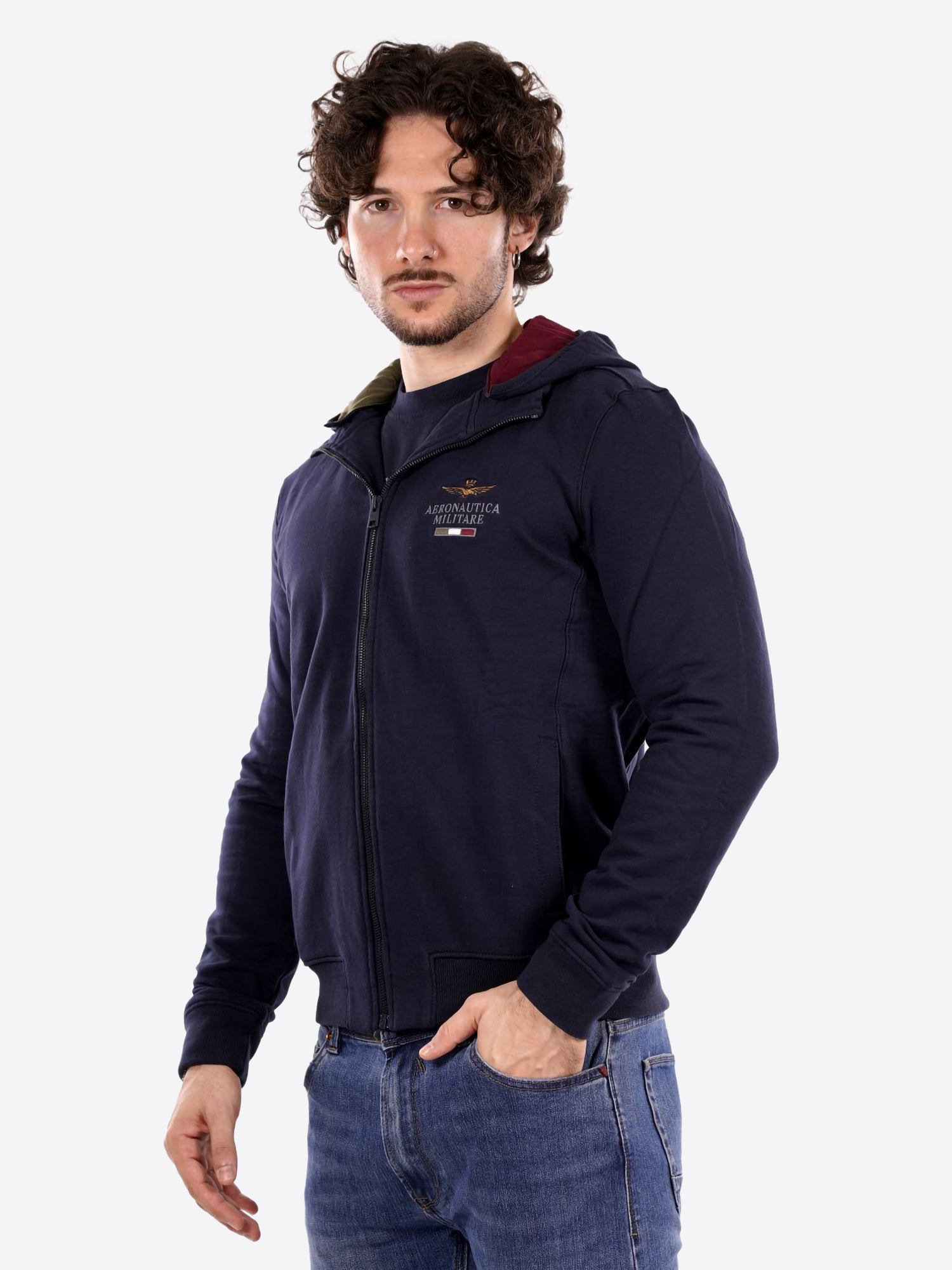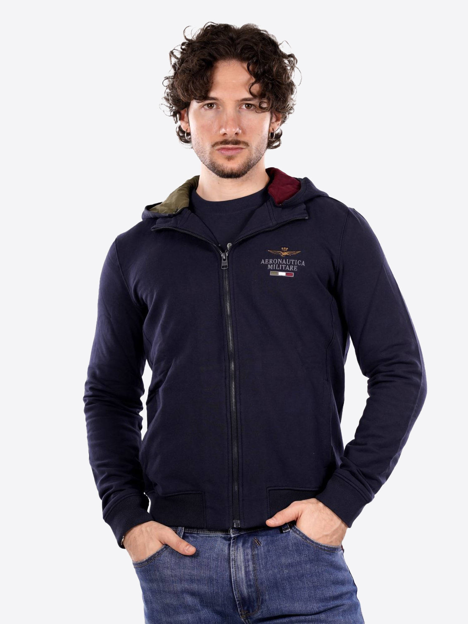 Home › Abbigliamento Uomo › Felpa full zip cappuccio AERONAUTICA MILITARE da Uomo - blu FE207808184 BLU