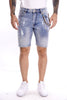 GIANNI LUPO Pantalone bermuda in jeans da uomo , lavaggio chiaro con strappi e catena decorativa