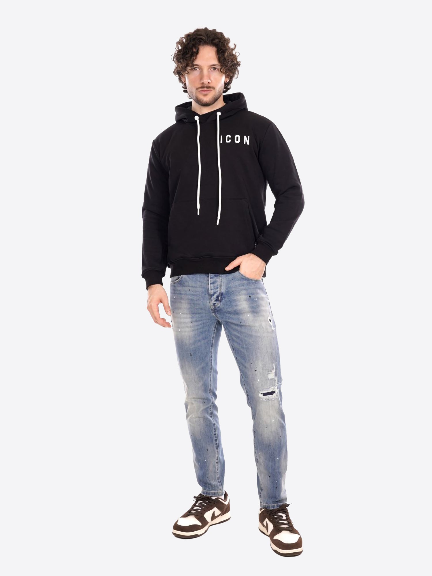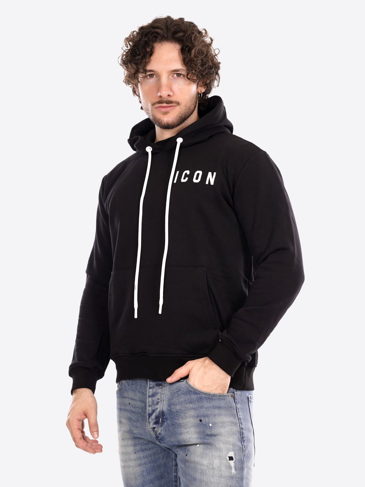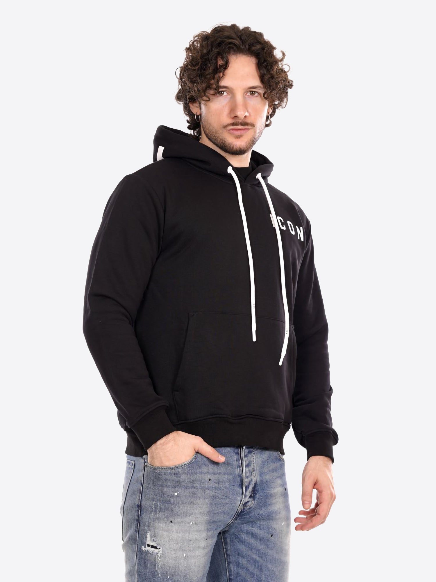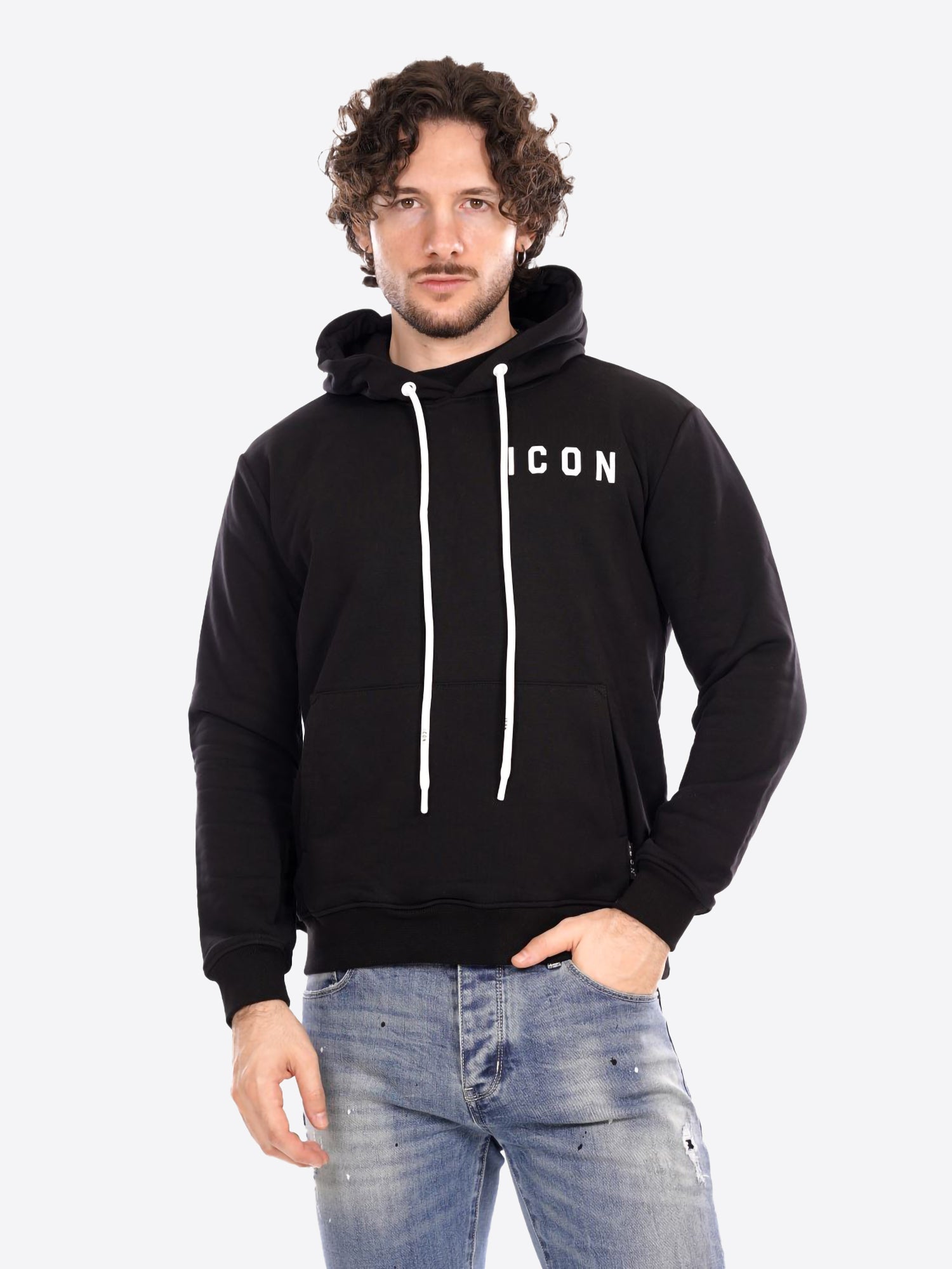Felpa Cappuccio ICON da Uomo - nero ICUF2W6F008NEROBIANCO