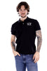 LA MARTINA Polo nera da uomo in cotone . Vestibilità regolare . Modello a mezze maniche con colletto classico e chiusura con due bottoni . Logo cucito sul petto in contrasto di colore