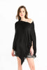 MOLLY BRACKEN Sciarpa modello poncho nera da donna in tessuto morbido effetto peluche con frange